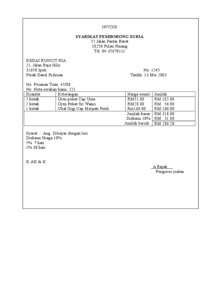 Contoh Dokumen Invois Asal Force Id Otosection